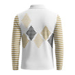 This long sleeve polo shirt stands out with its diamond stripe design along the sleeves, offering a touch of distinction while maintaining a timeless appeal. The subtle pattern enhances its visual interest without overwhelming the classic polo profile. The signature three-button placket and neatly finished collar further elevate its traditional look, suitable for both on and off the golf course.