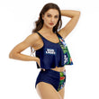 This timeless two-piece bikini, adorned with ruffles on the top, offers a comfortable and regular fit for women of all sizes. The suspender top and lining at the bottom provide added comfort and support, ensuring you can enjoy your water activities with peace of mind.
